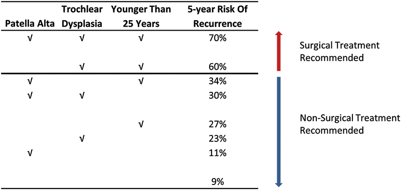 Lewallen L, McIntosh A, Dahm D. First-Time Patellofemoral Dislocation: Risk Factors for Recurrent Instability. J Knee Surg. 2015 Aug;28(4):303-9. doi: 10.1055/s-0034-1398373. Epub 2015 Jan 29. PMID: 25633361.